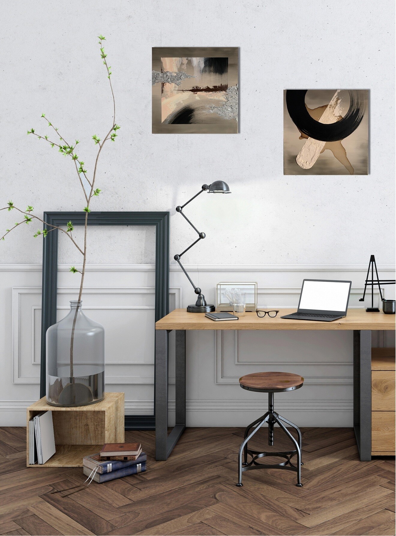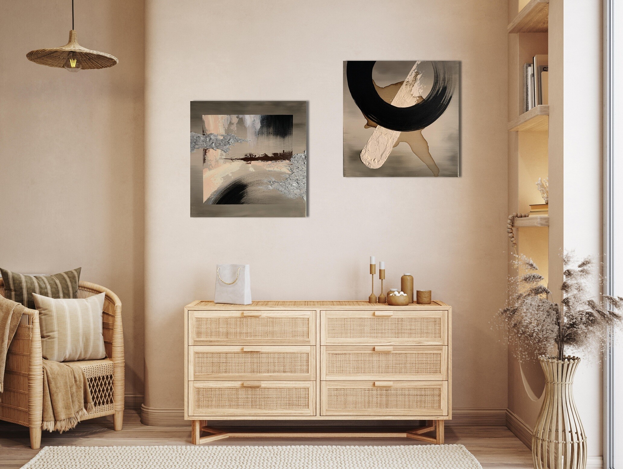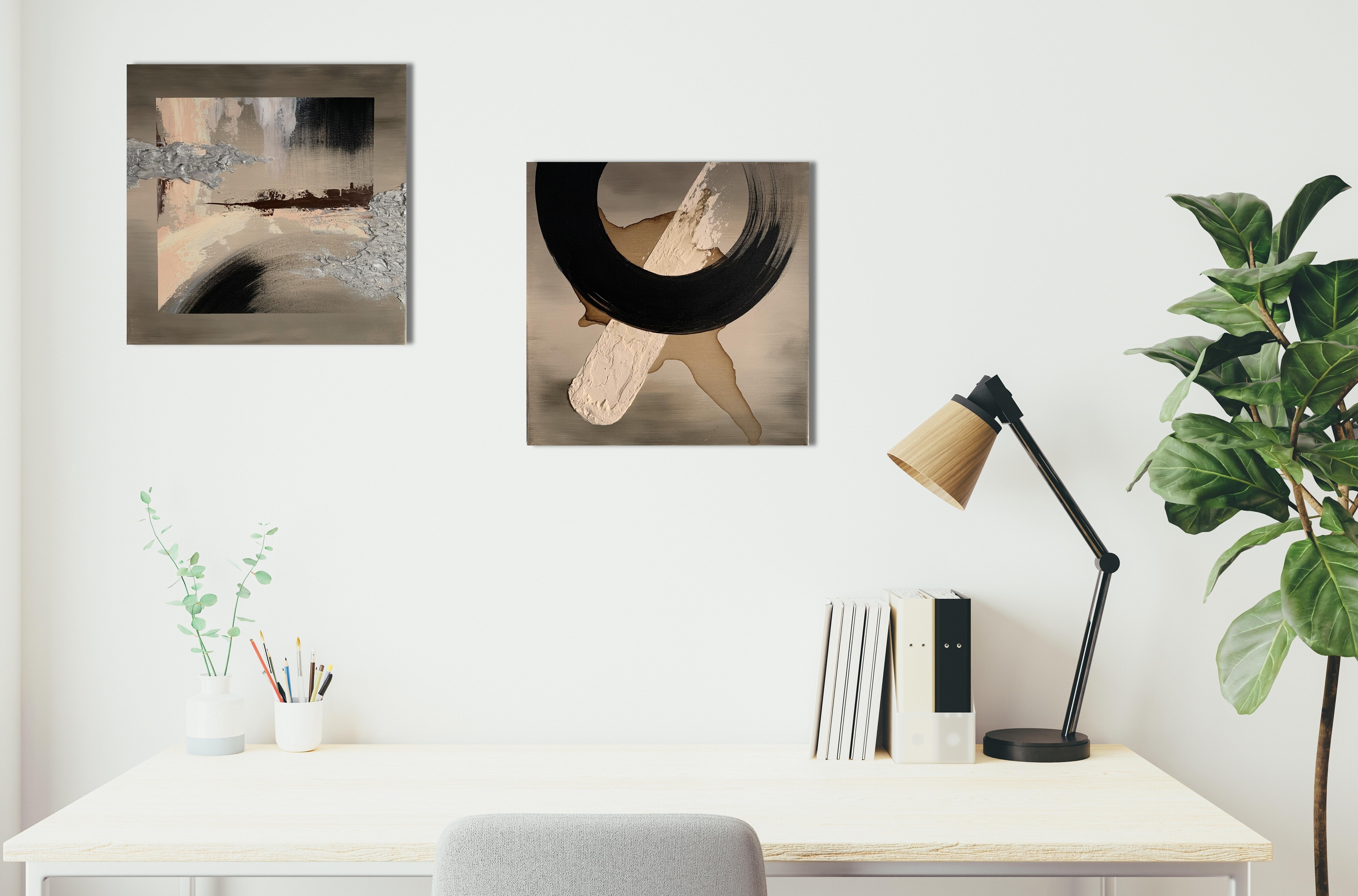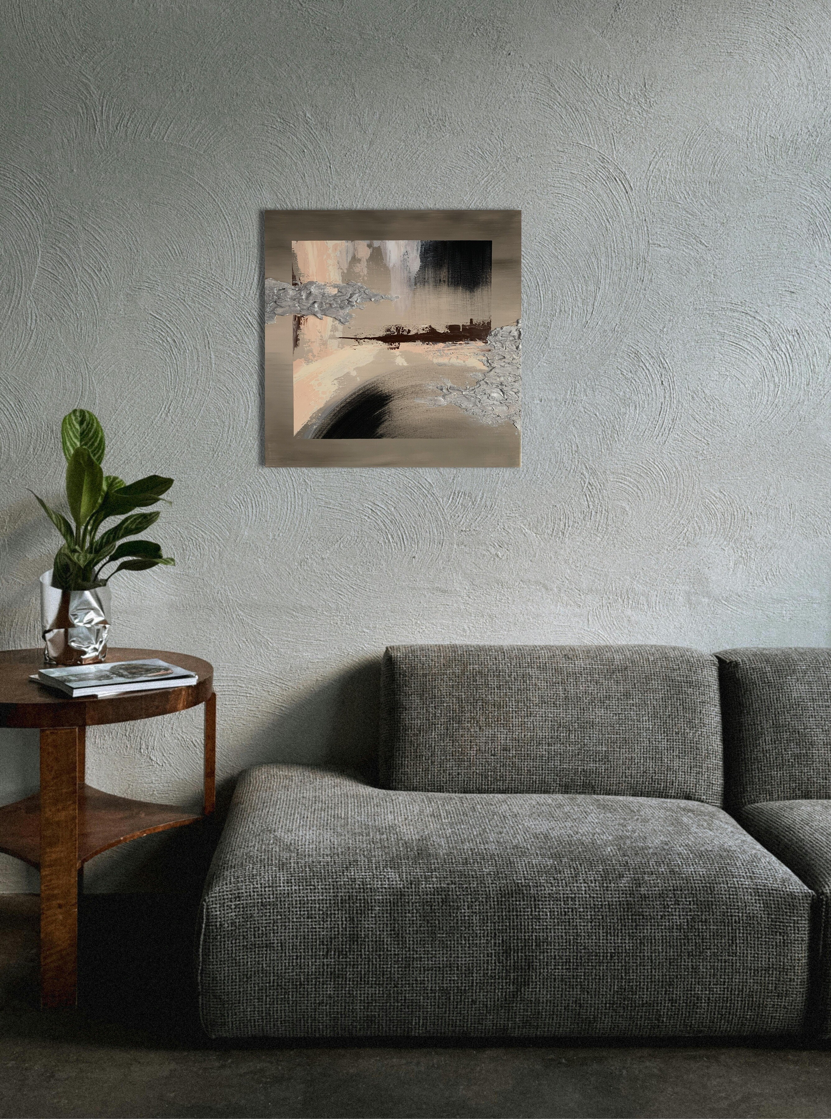 Stonowane kolory ziemi z gipsową strukturą w kolorze srebra.